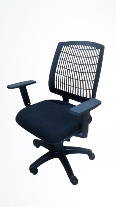 Cadeira Unique giratória, encosto de polipropileno, com ajuste de altura e braços.